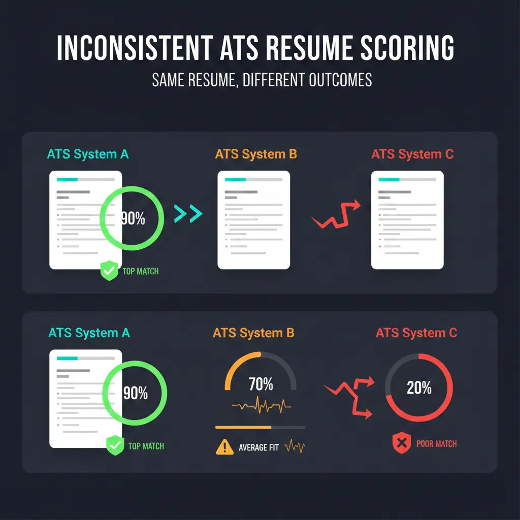 - Traditional ATS scoring is highly inconsistent, with different tools giving vastly different scores for the same resume.