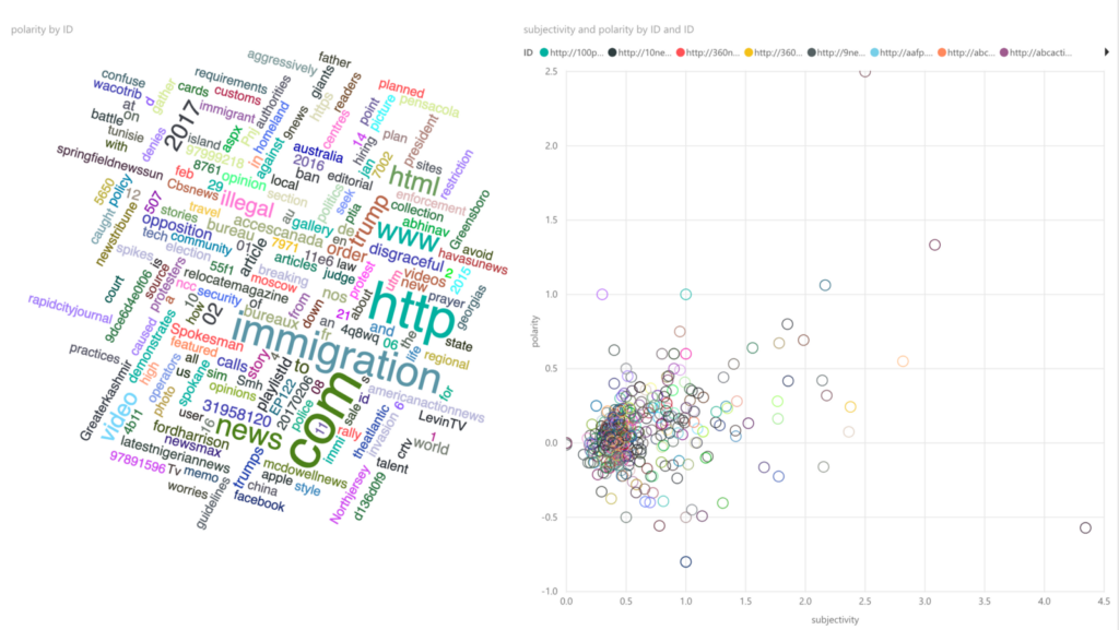 This visualization can show current topics of importance related to a keyword. For example, in the chart below, you can see that “immigration” is an important topic for the keyword search related to “Trump”.